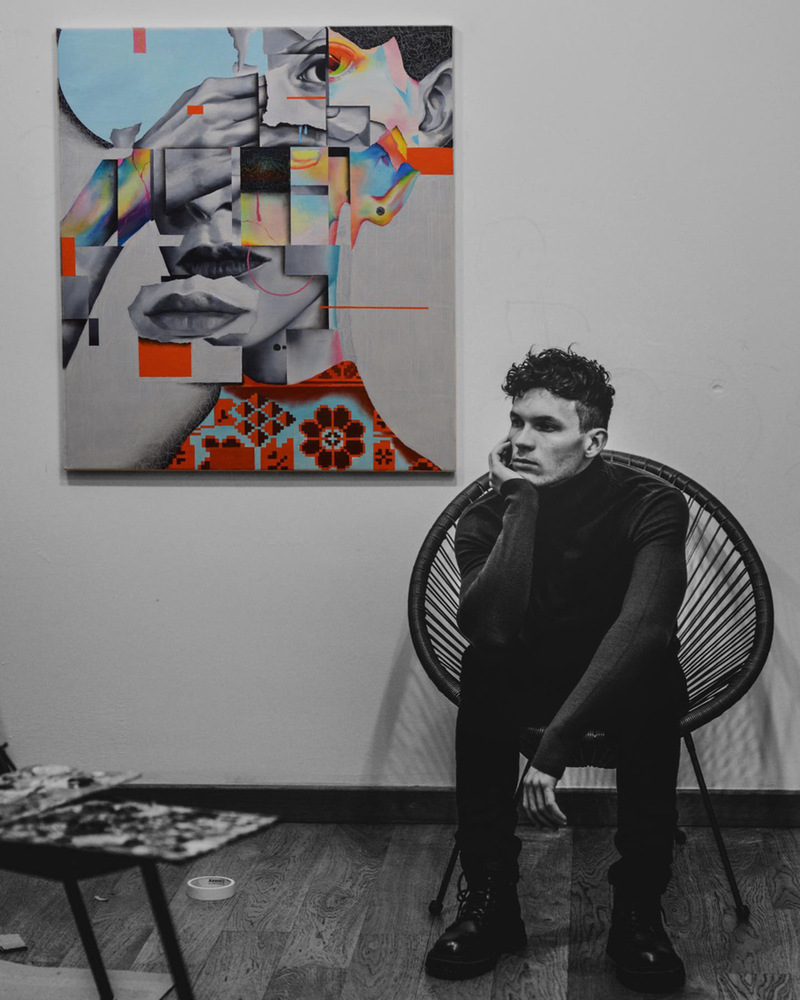 Його твори зображують окремі сцени людського існування, захоплені в дестабілізованих композиціях. Ефекти глітчу, наче сумніви, проникають у тканину робіт, розширюючи та розчленовуючи звичний вигляд людей, тварин і предметів. Усі переживання, враження та сцени з життя художника зливаються у геометричні форми, насичені градаціями тонів і плавними контурами людей і рослин. Основні медіа — олійний живопис, цифровий колаж, відео.