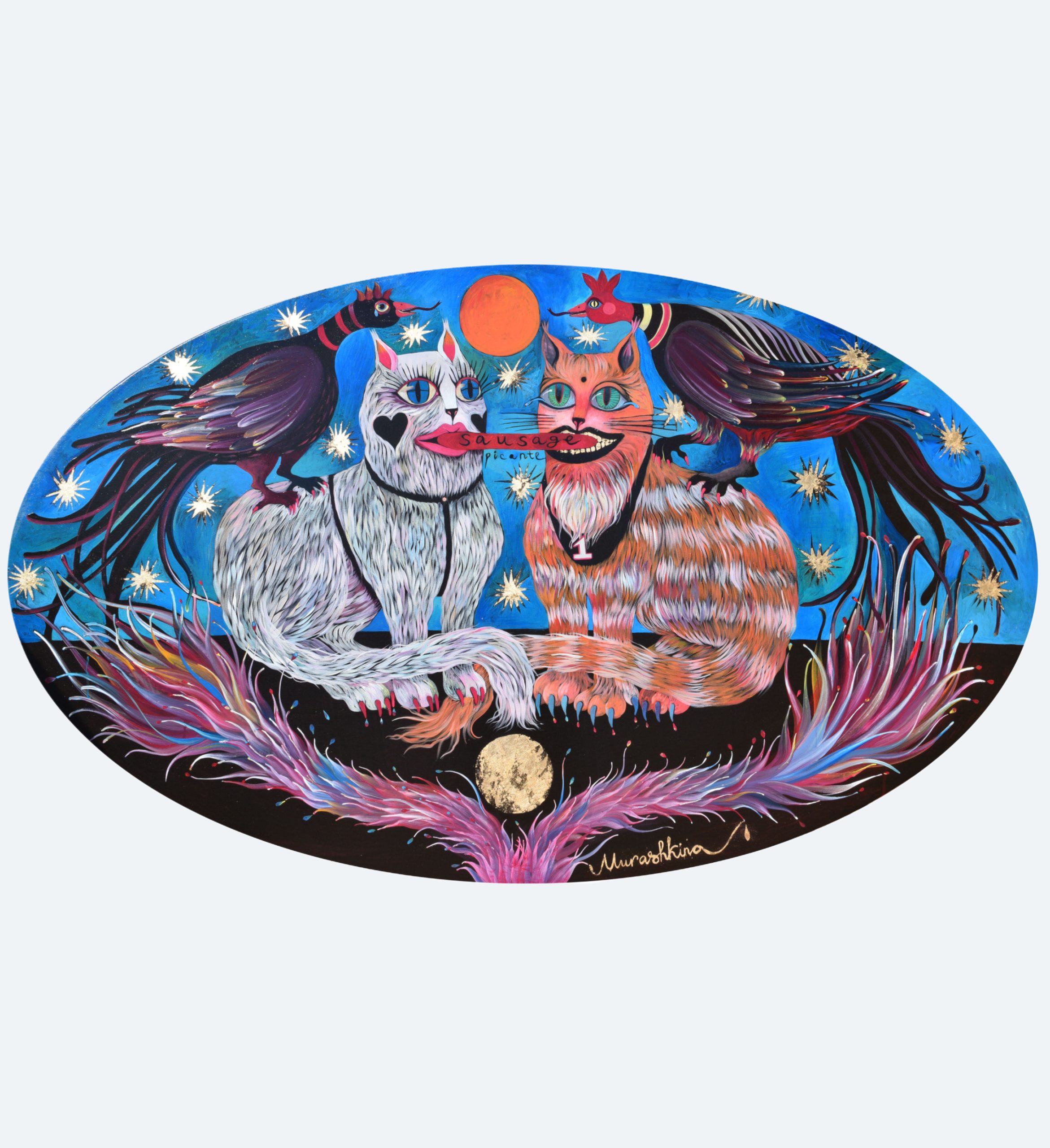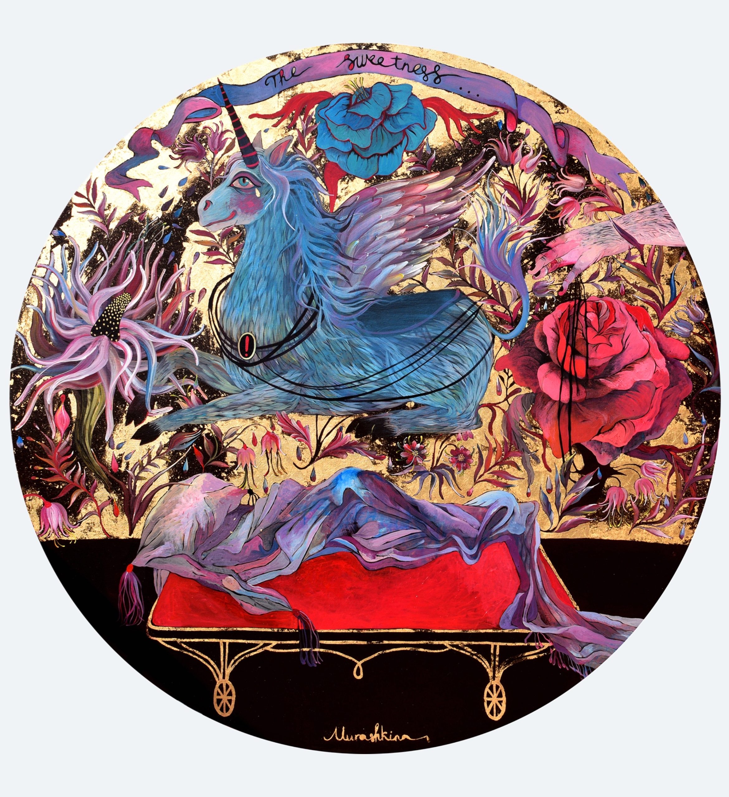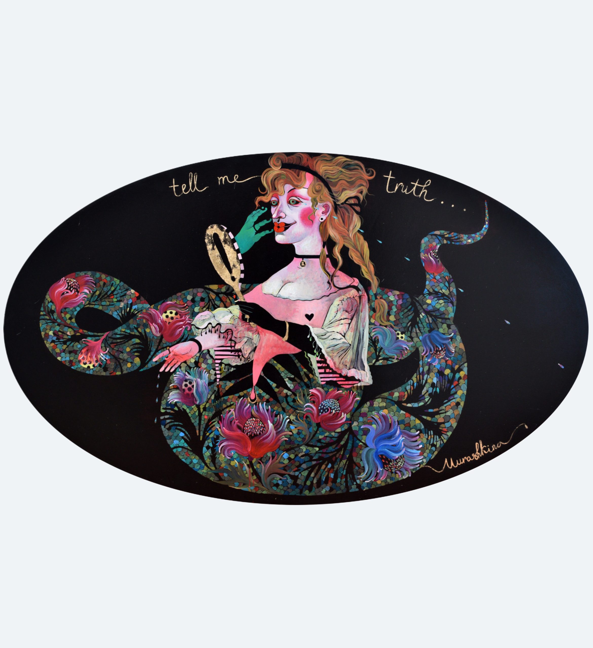 Використовуючи полотно, позолоту та акрил, вона створює візуальні наративи, в яких ключовими темами є психологія сексуальності, інтимна драма та пошук ідентичності. На формування її виразної естетики вплинули українське наївне мистецтво, образність індійської та японської культур, а також антична міфологія. Свої роботи мисткиня описує як «смачні деталі з підсвідомості та крайні межі, дозволені в соціальних відносинах».