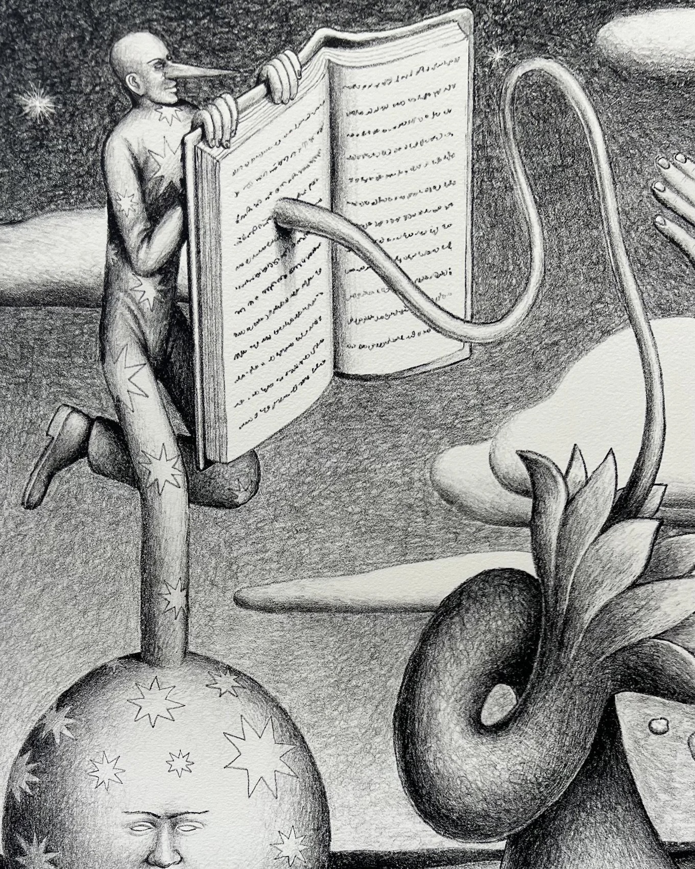 Володимир Манжос, відомий як Waone або Interesni Kazki, народився у 1981 році поблизу Києва. Головна візуальна мова — сюрреалістичні казкові історії з елементами духовного й символічного контексту. В роботах присутні теми екології, апокаліпсису, дуальності життя та космології. «Основна мета мого мистецтва — з’ясувати хто я є і дослідити зовнішній світ. Через процес творчості я перенаправляю увагу від марнотратного повсякдення до невидимих світів, до витоків буття. Мої сюжети — це мрійні, не лінійні історії, в яких поєднується фантазія, символіка, експресія. Від старих майстрів надихаюсь візуальною естетикою книг і гравюр»