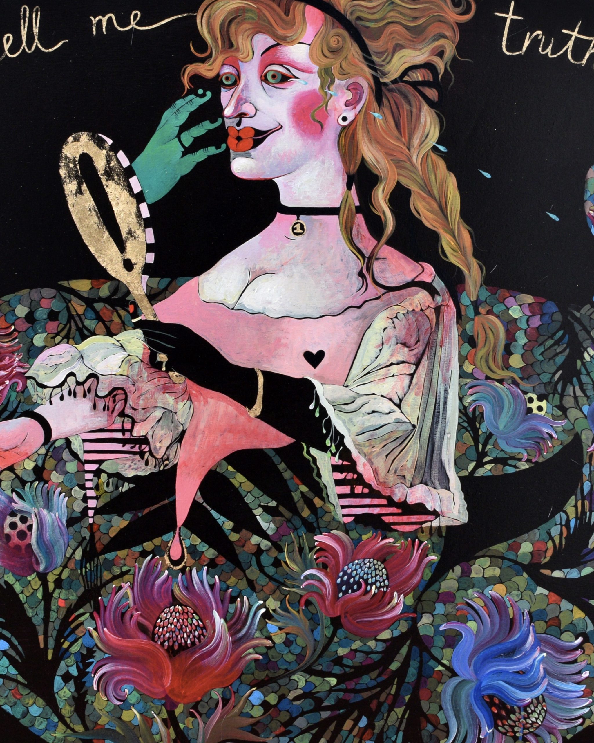 Ніна Мурашкіна — українська мультидисциплінарна художниця, народилася у 1985 році в Донецьку, нині живе та працює в Іспанії. Мисткиня створює візуальні наративи, в яких ключовими темами є психологія сексуальності, інтимна драма та пошук ідентичності. На формування її виразної естетики вплинули українське наївне мистецтво, образність індійської та японської культур, а також антична міфологія. Свої роботи Ніна описує як «смачні деталі з підсвідомості та крайні межі, дозволені в соціальних відносинах».
