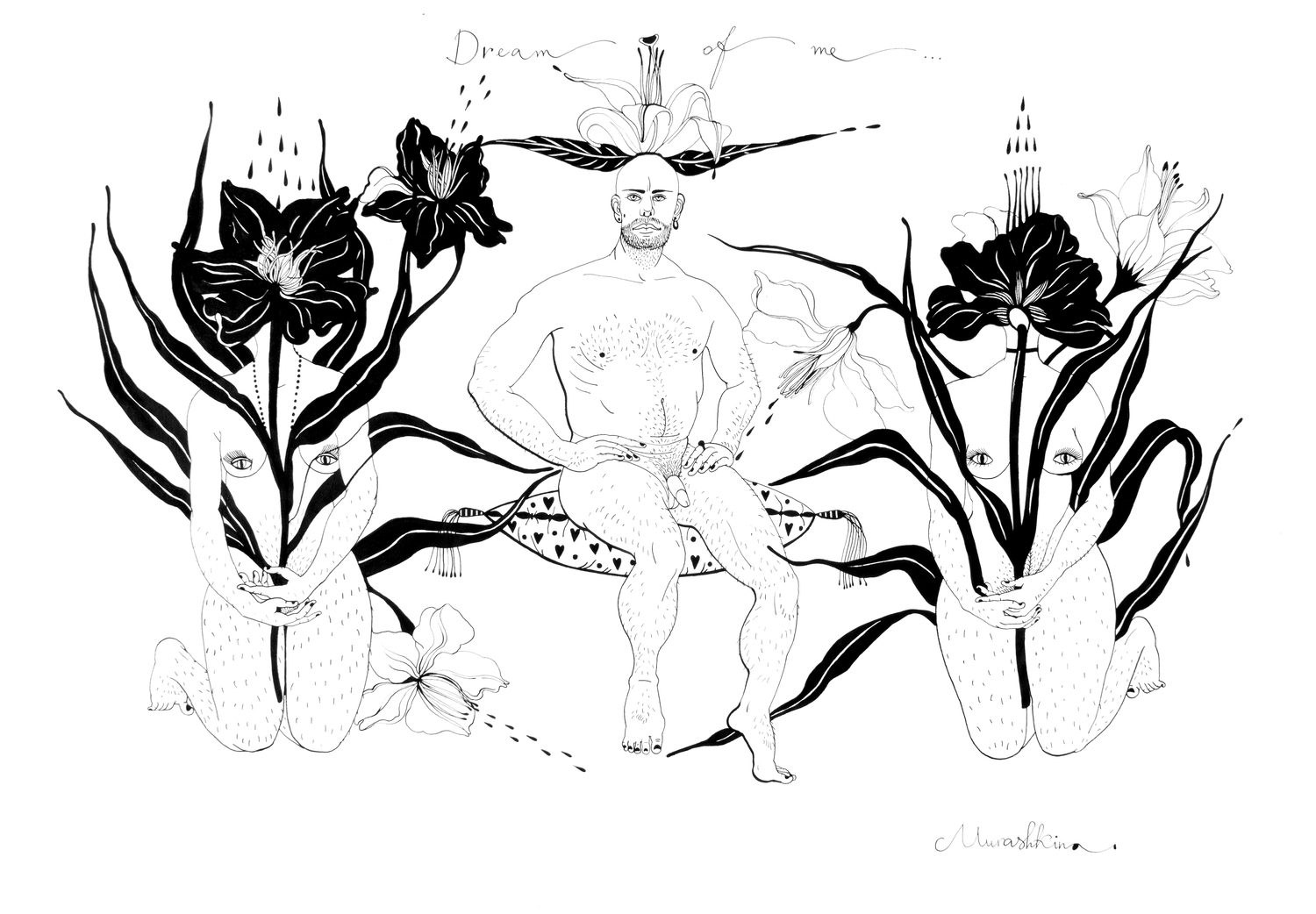 Ніна Мурашкіна — українська мультидисциплінарна художниця, народилася у 1985 році в Донецьку, нині живе та працює в Іспанії. Мисткиня створює візуальні наративи, в яких ключовими темами є психологія сексуальності, інтимна драма та пошук ідентичності. На формування її виразної естетики вплинули українське наївне мистецтво, образність індійської та японської культур, а також антична міфологія. Свої роботи Ніна описує як «смачні деталі з підсвідомості та крайні межі, дозволені в соціальних відносинах».