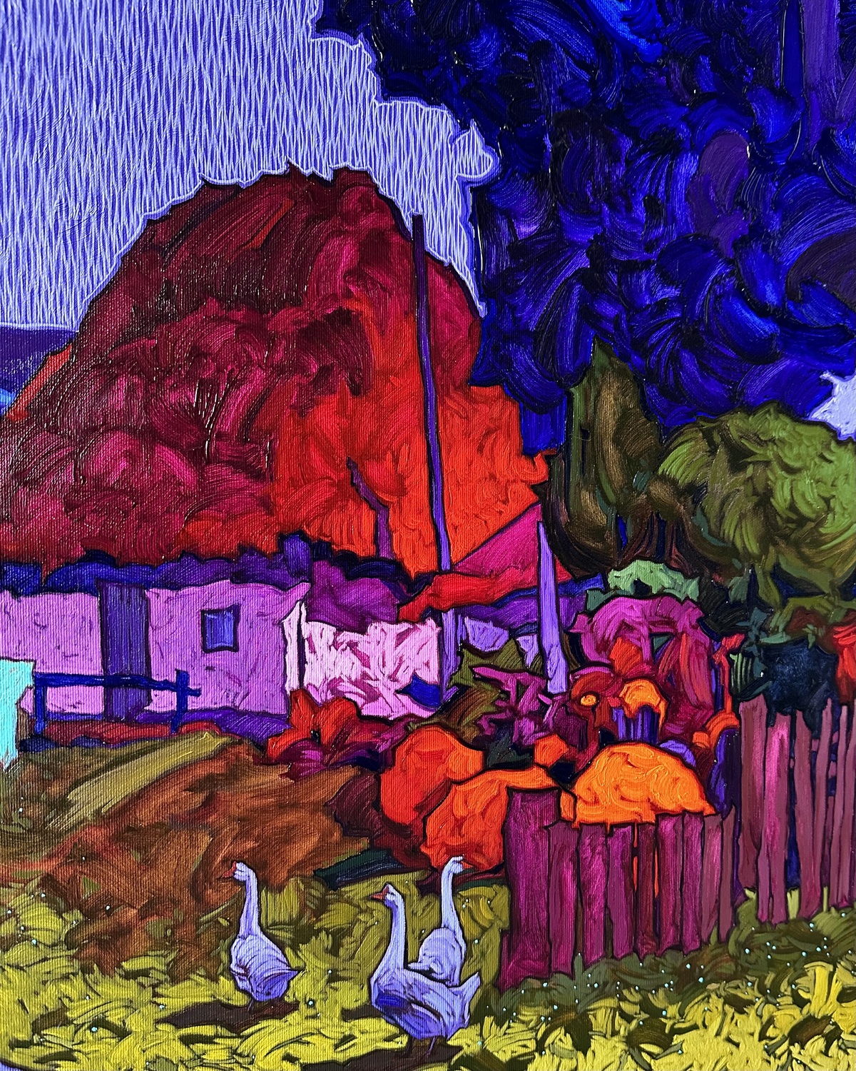 У творчості Сергія село постає не просто географічним місцем, а живою пам’яттю народу, втіленням ідентичності та культурного коріння. Через образи покинутих хат, побутових речей і зниклих традицій, художник досліджує тему втрати зв’язку поколінь. Його роботи стають спробою відродити духовний зв’язок між сучасністю та минулим, між людиною і землею. Село у його мистецтві – це простір спогадів, де кожен предмет несе власну історію. Таким чином Сергій перетворює звичний український побут на символ стійкості, пам’яті та любові до рідної землі.