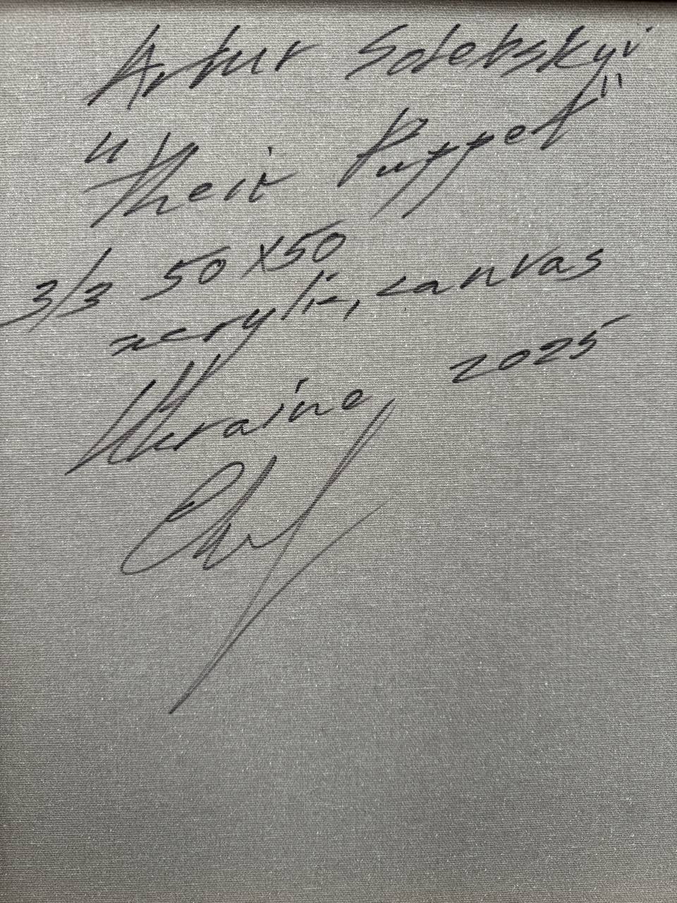 Триптих про контроль, спостереження й втрату автономії. Рука-корона символізує надмірну владу, всевидяче око — нагляд і тиск, а викривлена фігура — людину, позбавлену власної волі, керовану зовні. Це візуальна метафора системи, у якій тіло вже не належить собі.